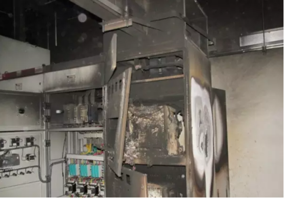 安裝在變電站和小區(qū)配電室內(nèi)的干式變壓器,因環(huán)境封閉,通風(fēng)散熱條件差,容易因設(shè)備過發(fā)生熱火災(zāi)。同時(shí)在一個(gè)密閉的空間,火災(zāi)發(fā)生后產(chǎn)生的濃煙使柜內(nèi)空氣絕緣水平降低,母線對開關(guān)柜體放電,造成母線相間短路,進(jìn)而發(fā)展為主變低壓側(cè)開關(guān)跳閘,10kV 母線失壓、干變及開關(guān)柜燒毀的事件。
